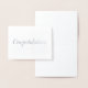 Celebrate with this beautiful card! The word "Congratulations" appears in silver foil over a gray background, in a handwritten-style brush (brushstroke) script font. The inside of the card is blank, ready for your personal message. Perfect for a wedding, engagement, anniversary, new baby, graduation, new job, promotion, retirement, or any other happy event or accomplishment.