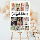 Stylish graduation party foam core display sign features "Congratulations" in trendy black calligraphy script with silver colored grad cap and modern custom text for the graduate's name and class year. Photo collage design includes 17 placeholder images that you can personalize with favorite growing up or senior portrait photos of your graduate.