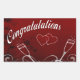 The design on this product is of two champagne glasses either side of two red love hearts. The word "Congratulations" above and swirls along the bottom. The background is red with black love hearts fading into it.