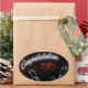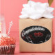 The design on this product is of two champagne glasses either side of two red love hearts. The word "Congratulations" above and swirls along the bottom. The background is black with red love hearts fading into it.