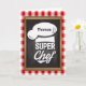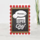 Congratulate the new chef by name with this fun, illustrative style card featuring a chef's hat with "Super Chef" logo type icon in white on menu blackboard with checkerboard tablecloth illustration background. Placeholder in chef's hat area for your chef's name. Inside has this placeholder congratulatory message, but can be customized with your message of choice. "Congratulations on graduating from culinary school! Wishing great success to the new chef!"