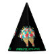 Celebrate achievements with this elegant party hat featuring "Congratulations" text and a beautiful flower image, complemented by a customizable "Add Text" option on a striking black background. Perfect for graduations, promotions, or any special celebration, this hat adds a sophisticated touch to your festivities.