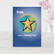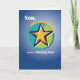 Put a smile on your Son's face with this happy congratulations card. This big shining star in orange color inside a multicolored circle on a blue background, is a perfect and funny way to tell him that you are proud of him.