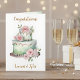 A congratulations card for newlyweds. You can add the bride and groom's names on the front in the personalize area. A beautiful white, pink and sage green wedding cake with a sentimental poem inside.