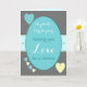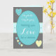 Personalize this gray, turquoise, yellow, with hearts, Wedding Day card for the Bride and Groom, with their names.