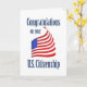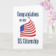 Becoming a US Citizen is the accumulation of hard work and the fulfillment of dreams. Offer your congratulations to a new US citizen with this patriotic card featuring the US flag. Great for business.