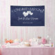 Congratulations White Hearts on Navy Elegant Wedding Banner designed for your Wedding Reception. The text includes: CONGRATULATIONS!, The Bride and Groom's Names and Wedding Date. To personalize, simply insert your text into our easy template, replacing the sample.