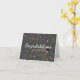 Celebrate the achievements of your loved ones with this stylish and minimalist graduation card. Featuring a sleek dark background adorned with colorful confetti and streamers, this card is perfect for any graduate. The bold white and gold lettering, along with a charming graduation cap illustration, adds a touch of sophistication and joy. Plus, you can personalize the background to a color of your choice, making it a truly unique keepsake. Whether it’s for a high school, college, or any other graduation, this card is sure to make their day extra special.