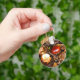 Keychain / keyring with photo of shiny brown / red conker (horse chestnut seed) and seed case on the ground