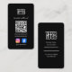 This is a bold black connect with us business card template that has the Instagram and Facebook Icons on the front side bottom and the username for your accounts below the icons. Your website is shown below the QR code. You can link any URL to the QR code, it's up to you. The template shows a website but you can change it you a social media page, a booking page, a portfolio link. For the logo section you can have a logo image, a headshot or another image. The possibilities are endless. On the backside you have your logo and business information. If you need help with your design or need help adding different social icons just click on the message button and I will quickly get back to you to assist you. Thanks, Sandy