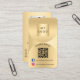 A faux gold looking background. Personalize and add your business logo, photo, name, title and contact information. Add your website url/link to the Qr code. With Facebook and Instagram icons. Black text. Text: Connect with us.