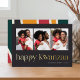 Share holiday greetings with these beautiful Kwanzaa photo cards featuring 3 vertical or portrait oriented photos aligned side by side. "Happy Kwanzaa" appears beneath in connected gold foil lower case serif lettering accented with stars. Personalize with your family name and the year.