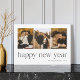Share holiday greetings with these beautiful New Year photo cards featuring 3 vertical or portrait oriented photos aligned side by side. "Happy New Year" appears beneath in connected lower case serif lettering accented with stars. Personalize with your family name and the year.