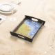This is a well made, sturdy wooden tray with a flawless black finish and lovely map on the tray surface. It is both vintage & modern at the same time. Looks exactly like the photo; does not disappoint. So nice to find something of quality individually made and not the mass-produced 'shabby chic' merchandise seen in stores. I am so pleased to be able to give this to my college-age niece for her birthday. This can be used as a tray to hold jewelry or toiletries, or hung on the wall as art. The map surface is sealed (it is slightly shiny) so would be moisture resistant. It is well worth the asking price but I was able to apply a sale code as well. Very happy with my purchase. Map is crisp & clear and sealed with a water-resitant finish.