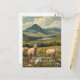 A charming postcard of Connemara, featuring grazing sheep on lush green hills, with rolling landscapes stretching beneath a wide, open sky.