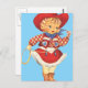 Adorable vintage cartoon of a blond little girl in a red cowgirl outfit