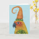 Connor the conure with hat of carrot and peas card