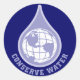 The earth inside a large drop of water and caption Conserve Water available on Earth Day T-shirts, Earth Day Buttons, Ecology Mousepads, Conservation Mugs and more Gifts.