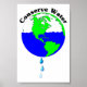 A graphic of earth with half the water draining out of the bottom. The words Conserve Water is above it.