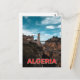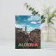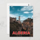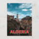 A suspension bridge spans a deep gorge, connecting rocky cliffs under a partly cloudy sky. The word "ALGERIA" is prominently displayed at the bottom in bold red letters.