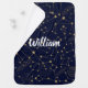 Constellation Galaxy Space Gold Stars and Planets Personalized Name Blue baby blanket