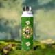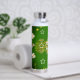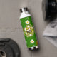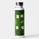 This beautiful and whimsical design has a loose pattern of white flowers, constellations and bees. It's displayed against a deep green and black background. Fun and interesting water bottle for traveling anywhere.