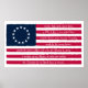 Stylized Betsy Ross flag graphic with the preamble of the United States Constitution displayed on the red stripes.