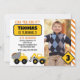 Party Under Construction! This construction party invitation features construction trucks, road signs, and a photo of the guest of honor. Celebrate your little builder with a super fun construction site birthday party!