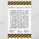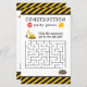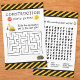 Celebrate your little one's special day with this custom boy birthday party activity game sheet with an adorable construction theme. The game sheet has an excavator, a dirt pile, a stop sign, a hard hat, and orange safety cones. There are also yellow and black stripes. There is a labyrinth maze on the front and a word search on the back.