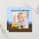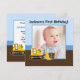 Construction Blue Brown 1st Birthday Boy Photo Invitation