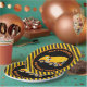 This paper plate is designed with construction transport with yellow and black slanted stripes background. This plate is great for a construction