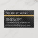 Construction business cards with cool black texture look background, simulated gold metallic line graphic, and a great text layout you can customize. Best business cards for business themes related to building construction. construction equipment leasing, builders or supplies.