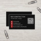 Construction theme minimalist modern business cards with communication icons and QR Code template you can replace with your own business QR Code along with a simple layout you can customize online for businesses related to the field or construction, home remodeling, home services, or a Realtor.