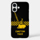 Silhouette of construction crane. Vector icon with customizable color. Custom text.
