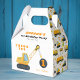 Smash your party goals with these fun construction-themed favor boxes featuring a yellow crane and wrecking ball design! Perfect for filling with candy, small toys, or party favors, these boxes are a hit with truck-loving toddlers and guests alike. Personalize with your child's name, age, or party date for a playful finishing touch that ties into your construction birthday theme.
