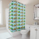 This shower curtain design is perfect for a little boy's bathroom. It features a yellow backhoe and a green and yellow dump truck in a horizontal stripe pattern.