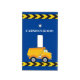 Cool custom construction vehicle light switch cover for a child who loves yellow construction vehicles in black and yellow. Fun blue vehicle room decor for a little boy who loves cars and trucks. Customize with your kid's name under the black and yellow caution tape above the excavator.