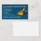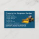 Professional construction equipment rental business card with image of a backhoe and organized layout with construction equipment content you can customize to suit your business.