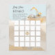 Cute Baby Shower "BINGO" design featuring a muted watercolor construction-themed design with an excavator surrounded by dirt, rocks and construction cones.