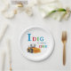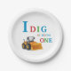 Celebrate your little one's first birthday with this adorable construction-themed paper plate! Featuring a vibrant yellow excavator graphic and the playful phrase "I Dig Being One," it's perfect for any toddler who loves trucks and heavy machinery. This durable paper plate adds a fun and unique touch to your party decorations, making your child's special day even more memorable. Ideal for serving cake or snacks at a first birthday bash, this plate is sure to be a hit with both kids and adults.
