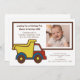 Plain white envelopes are included with paper invitations and will come to fit the invitation size you select. If you don’t need the envelopes, you may choose to not receive them by selecting the dropdown below "Envelopes" and choosing "None." If you’d like to have a design on your envelopes, you can browse all of these available envelopes to find the design that complements your Construction Fun Dumptruck Photo Invitation.