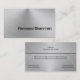 Construction grey metal business cards. On the front there is your name in charcoal grey using the cool font Screwed Regular on two tone grey metallic texture. It can be replaced by your company name as it is a template. On the back there is the same textured metallic pattern with a black stripe across the card. This customizable masculine design is perfect for construction and maintenance or other industry fields. Note that there is no real metal on the business card.