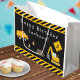Celebrate your little one's special day with this custom boy gift bag with an adorable construction theme. The gift bag has a dump truck and excavator working together at a road construction site. There are also orange traffic cones, a dirt pile, and yellow and black stripes. Add your Happy Birthday greeting and your child's name and age for a special touch!