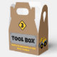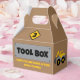 These adorable favor boxes are made to look like a tool box and are perfect for some treats for your construction party. The front and back feature a box for big text that says "Tool Box" or change it to your child's name. Plus, there's a place for a short message and your child's age. Construction trucks decorate each side.