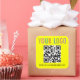 Personalize our rounded square QR code stickers with your company logo, QR code link, and custom text. These are professional scratch resistant stickers printed on acid-free paper. Designed in yellow and other colors (all colors are customizable). Available in a glossy or matte finish in sizes 1.5 inch and 3 inch. Low minimum order quantity and no setup fee.