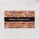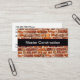 Construction theme business cards designed with brick wall background and company name featured on the introduction side. A smart two side design with your services and contact info on the information side. Designed for the building construction, home remodeling, or related services.