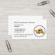 Construction service business card template with a unique construction vehicles emblem in the background with a steam roller, dump truck,, earth mover on the emblem and simple business card layout you can customize online.