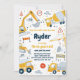 Construction Site Dump Truck Digger Birthday Party Invitation