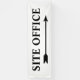 Simple bold on site office wayfinding directional outdoor banner sign with arrow graphic and classic black and white created as an online template you can customize to change the arrow direction or customize the text your way. A budget friendly option with or without grommets.