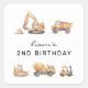A modern party sticker featuring watercolor construction trucks and bold black typography. Perfect for sealing envelopes, favor bags, or party decorations.